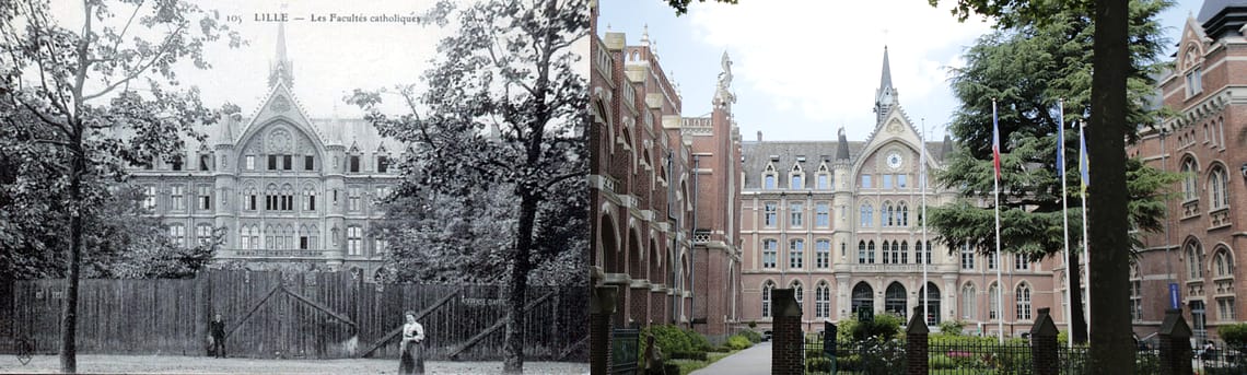 Depuis 1875, l’Université Catholique de Lille existe grâce à la générosité de deux entrepreneurs visionnaires, Camille FERON-VRAU et Philibert VRAU. Au fil des années, l’Université a su évoluer et s’adapter aux défis des différentes époques, tout en restant fidèle à ses valeurs fondamentales et en poursuivant des actions tournées vers l’avenir.